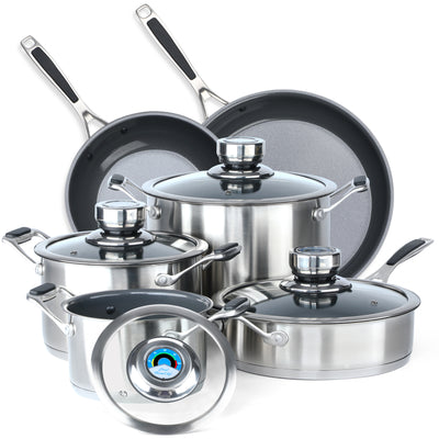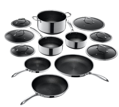 Love the way that they cook the food evenly, they never stick even when i tried too. I love them everyone should have one of these pots and pans set in their homes. -A